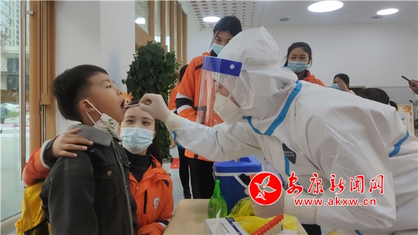 為全力確?!耙咔榉揽亍焙汀皩W(xué)生開學(xué)”工作雙推進(jìn),連日來,安康市高新區(qū)部分學(xué)校相繼開展學(xué)生錯(cuò)峰檢測報(bào)名的方式,保證“防疫”、“開學(xué)”兩不誤。筆者在高新第五幼兒園門口看到,在老師們的指引下家長帶著孩子分組站隊(duì),間隔一米,手持核酸檢測二維碼,耐心等待。醫(yī)護(hù)人員則穿戴防護(hù)服,認(rèn)真細(xì)致地為學(xué)生們進(jìn)行檢測取樣。截至目前,全校師生已全面完成采樣工作。(毛潤/圖文)?