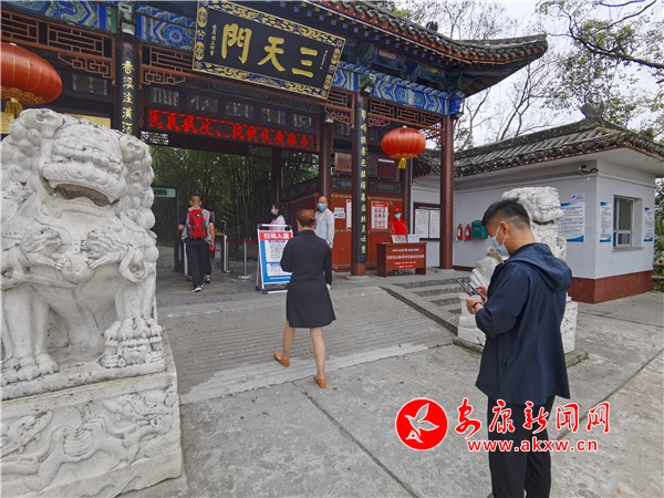 本網(wǎng)訊(記者 羅超)9月11日,在安康市香溪洞景區(qū)“三天門”外,不少市民、游客正在大門附近有序排隊,在不遠處,文明旅游相關(guān)標語設置在醒目位置,不少人依次通過閘機進入景區(qū)。