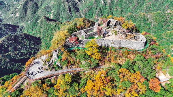 全勝寨位于我市嵐皋縣民主鎮(zhèn),是一個(gè)隱于群山、建于絕壁之上、保存完整的古山寨群落。古寨遺存的多處石砌城墻和戰(zhàn)壕錯(cuò)落有致,延綿數(shù)公里,為秦巴山區(qū)所罕見。據(jù)當(dāng)?shù)厥分居涊d,此寨始建于明末,是當(dāng)?shù)孛癖姙槎惚軕?zhàn)亂而建。因山寨抵御多次外來侵?jǐn)_,屢獲全勝,故名“全勝寨”。這里平均海拔1300至1500米,是陜西省第七批文物保護(hù)單位,也是目前我省保存較為完好、歷史戰(zhàn)績輝煌的寨堡,同時(shí)也是重要的革命歷史舊址。對(duì)于研究明、清、民國時(shí)期嵐皋歷史文化和寨堡建筑具有重要價(jià)值。(袁法 攝)