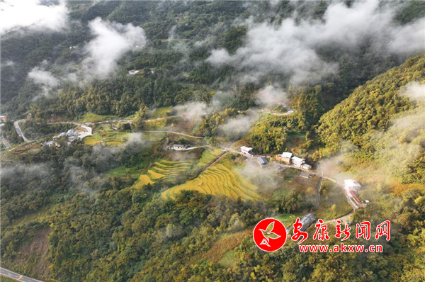 大湖溪位于鎮(zhèn)坪縣城關(guān)鎮(zhèn)友誼村,距離縣城大約半小時車程。沿207省道順南江河而下,穿過南江湖大壩就到了谷口。一條嶄新的柏油馬路沿溪流伸向大山深處,茂密的森林覆蓋著山巒,星星點(diǎn)點(diǎn)的農(nóng)舍、民宿集群和土地,若隱若現(xiàn)地掩映在云霧繚繞的群山之間,許多保存完整的巴山古老傳統(tǒng)民居石板屋,炊煙裊裊,與淡淡的晨霧相互交織,構(gòu)成了一幅渾然天成的水墨畫卷。放飛手中的無人機(jī),我貪婪地捕捉這一幅幅夢幻般的景致。