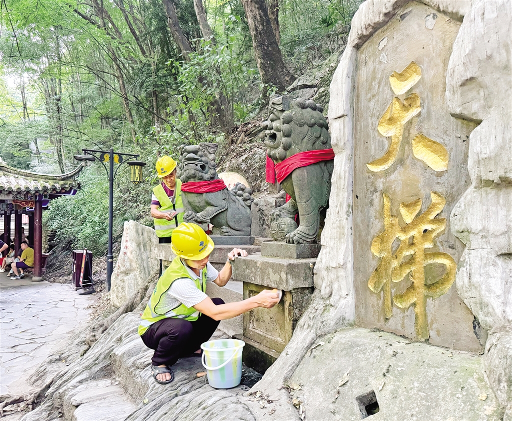 8月22日,工作人員正在香溪洞開展景區(qū)設(shè)施清理工作。據(jù)施工現(xiàn)場負(fù)責(zé)人介紹,香溪洞風(fēng)景名勝區(qū)管理局將會對供水、供電、照明等設(shè)施進行升級改造。(鄒一銘 攝)