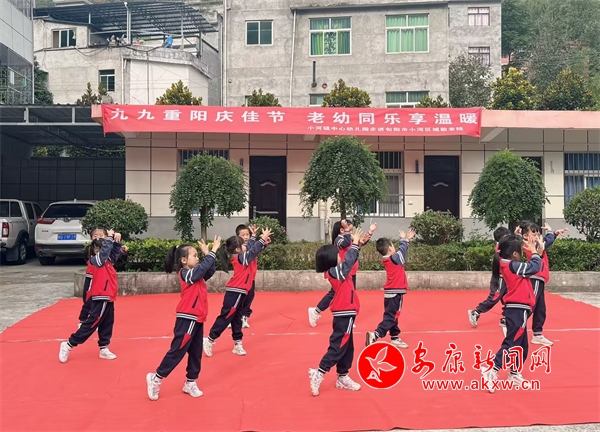 為弘揚中華民族尊老敬老的傳統美德,培養(yǎng)幼兒尊老、敬老、助老、愛老的美好品質,在重陽節(jié)來臨之際,10月10日,旬陽市小河鎮(zhèn)中心幼兒園組織孩子們,走進小河區(qū)域敬老院,開展“九九重陽慶佳節(jié),老幼同樂享溫暖”實踐活動?;顒又校⒆觽?yōu)闋敔斈棠太I上了精心準備的歌舞表演,老人們和孩子們一起系上大紅綢,扭起秧歌來,大家一起進行了有趣的游戲。孩子們用稚嫩的動作,甜美的笑容,給老人們平淡的生活里帶去了歡樂。(通訊員 劉曉玲 李冬梅)?