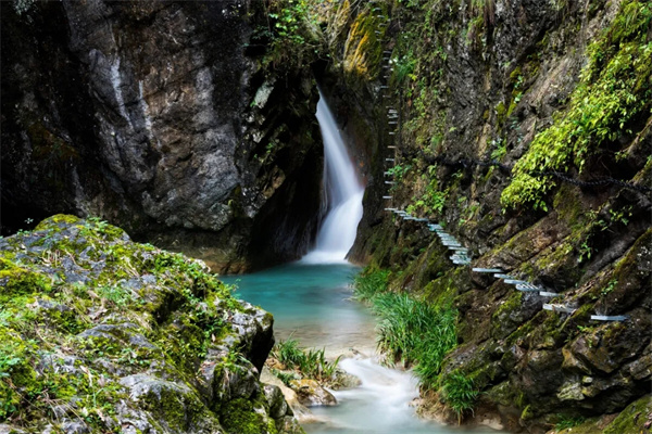 下午,我們來到雁山瀑布景區(qū),我向一對剛剛從山上下來的小情侶打聽景區(qū)狀況,他們說景區(qū)海拔約相差300多米,長度約2800余米,有2000多個臺階,由47個瀑布、36個碧潭分13級跌宕而下,主瀑布高達100多米,水流從高山石壁上飛流而下,瀑布、碧潭、蹊徑、花海融為一體,如詩如畫,非常壯觀,值得一看。雖然心動不已,但是我聽到有那么多臺階,想到自己腳傷未愈,頓時打了退堂鼓,老公見我不上去,他覺得自己一個人爬山也沒多大意思,也就打消了上去的念頭。我們坐在售票大廳對面的涼亭休息。涼亭里面還有一個穿著黑色連衣裙的中年女子。我問她是不是已經游完瀑布了。她笑了笑說:“我爬不動,沒有上去,我媽一個人上去了?!蔽殷@詫地問:“你媽今年高壽?”她說:“我媽今年快七十了,平時喜歡運動,她的體力比我好多了,經常是她已經到達山頂,而我還在半山腰?!彼f她家在碑林區(qū),她沒事的時候就帶著老媽四處走走。我不禁想起我的媽媽,頓時唏噓不已。我媽媽也是一個喜愛運動的人,去年冬天,因為突發(fā)疾病,導致右邊的肢體不良于行,現(xiàn)在出行都靠輪椅,旅游也就更談不上了。