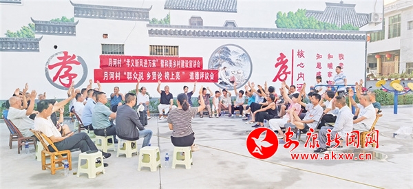 在今年的每一次道德評議會上,月河村干部和鄉(xiāng)賢能人都積極宣講村莊發(fā)展規(guī)劃以及孝善行為的重要性,宣講團成員詳細解讀孝義文化,帶動村民踴躍參與“五美庭院”創(chuàng)建。在此過程中,“說論亮”道德評議制度有效運行;“群眾說”讓大家暢所欲言,把村里的大小事擺到臺面;“鄉(xiāng)賢論”借助鄉(xiāng)賢的智慧與威望分析問題、化解矛盾;“榜上亮”則讓好與壞一目了然,便于群眾監(jiān)督。特別是,為激勵村民見賢思齊,學典型、爭先進、樹文明,月河村利用孝義文化長廊、宣傳欄、道德講堂等載體,把評選出來的道德典型事跡“上榜、上墻”,形成示范引領效應,讓良好道德品質(zhì)看得見、摸得著,進一步激發(fā)村民的主人翁意識,讓移風易俗的觀念深入人心。