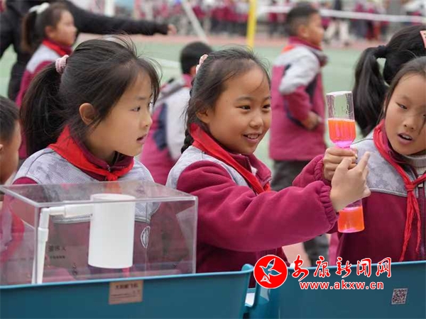 在各個科學(xué)實(shí)驗(yàn)項(xiàng)目前,同學(xué)們駐足停留,認(rèn)真觀察、反復(fù)操作,沉浸在知識的海洋與科技的奧秘中,操場上不時(shí)傳來陣陣驚嘆聲?!拔易罡信d趣的是機(jī)器人,通過手柄遙控能讓機(jī)器人模仿奔跑跳躍,跟我們打招呼,真是太神奇了,我以后要更加努力地學(xué)習(xí)科學(xué)知識,探索更多的未知領(lǐng)域?!蔽迥昙壱粚W(xué)生激動地說。