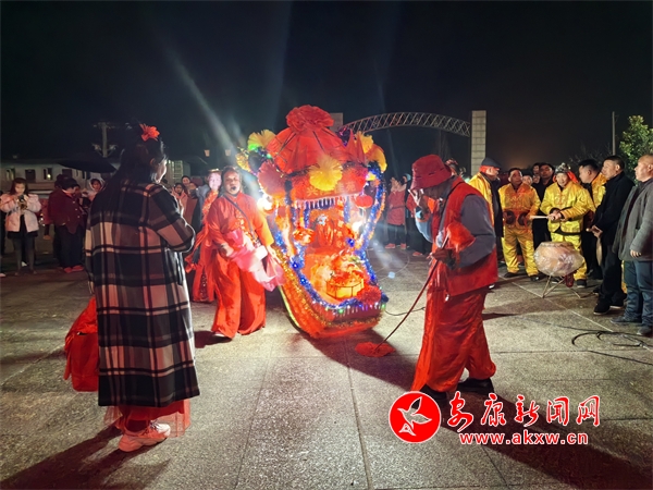 在位于漢陰縣平梁鎮(zhèn)的興隆佳苑社區(qū),春節(jié)期間,小區(qū)里處處洋溢著節(jié)日氛圍。夜幕降臨,社區(qū)廣場響起陣陣鑼鼓聲,?;ù硌菡介_始。只見表演者雙手提船、配合默契,船體隨著“波浪”旋轉(zhuǎn)、顛簸,身穿喜慶艷麗的服裝、頭戴五彩頭飾的表演人員個個精神抖擻,一邊前行,一邊唱著漢陰本地的花鼓戲,祈求來年風(fēng)調(diào)雨順、福壽安康。翻飛的彩扇、華麗的彩船,精心編排、詼諧幽默的表演,為社區(qū)群眾呈現(xiàn)了一場精彩的視覺盛宴。