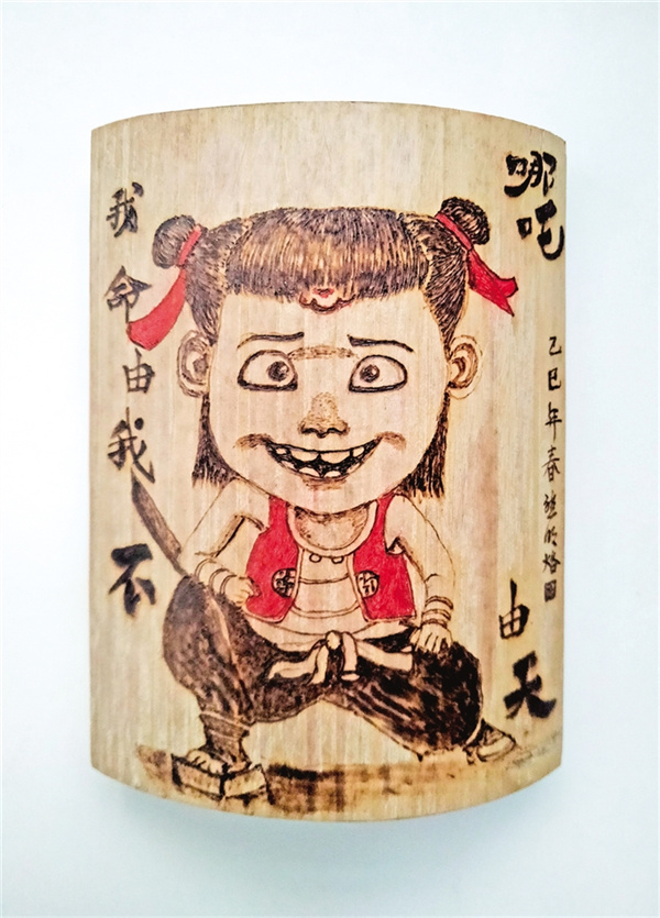 與此同時(shí),在石泉,另一位非遺傳承人也不甘落后,用小小的烙鐵為大家勾勒出了哪吒、申公豹等鮮活的形象。退役軍人楊聰明,身為石泉烙畫(huà)非遺代表性傳承人,他微笑著向筆者分享創(chuàng)作初衷:“看到哪吒這個(gè)形象如此火爆,孩子也鬧著讓我畫(huà)一個(gè),我便也嘗試著拿起了烙鐵。剛開(kāi)始畫(huà)的時(shí)候比較隨性,畫(huà)出效果后再進(jìn)行仔細(xì)修改。我深知,想要塑造出生動(dòng)的形象,必須付出大量的時(shí)間和精力去精雕細(xì)琢。由此我也更加敬佩電影團(tuán)隊(duì),他們的付出和努力不言而喻。我們都是在用自己的方式,向中華國(guó)粹致敬!”