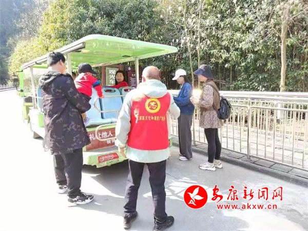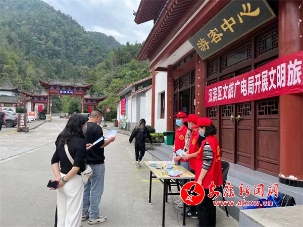 為增強游客的文明旅游意識,近日,漢濱區(qū)文旅廣電局組織志愿者們在雙龍景區(qū)現(xiàn)場向市民游客發(fā)放文明旅游宣傳折頁,宣傳講解文明旅游相關(guān)知識以及應當遵循的行為規(guī)范,引導游客有序排隊游玩。宣傳彩頁內(nèi)容既包含了安康的歷史文化、自然風光介紹,也強調(diào)了保護環(huán)境等文明旅游具體要求,旨在引導每一位游客成為文明旅游的踐行者和傳播者,從自身做起、從小事做起,共展文明風采,共樹文明形象,共享文明旅游好風景。(漢濱區(qū)委宣傳部供圖)?