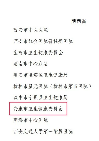 安康市衛(wèi)健委榮獲全國先進(jìn)