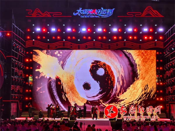 夜幕降臨,開幕式現(xiàn)場(chǎng)美輪美奐、氣勢(shì)恢宏。燈光秀、歌舞秀拉開活動(dòng)帷幕,博得雷鳴般的掌聲。21個(gè)鎮(zhèn)代表隊(duì)登臺(tái)亮相?!盁熁ㄐ恪辫矈Z目,化作多彩光芒,點(diǎn)亮太極城的夜空。伴隨著現(xiàn)場(chǎng)觀眾的激情吶喊,文藝節(jié)目相繼上演,歌伴舞《沖呀!去旬陽》、旬陽好物旬陽非遺推介、舞蹈《舞動(dòng)長(zhǎng)樂紅》、民歌聯(lián)唱《姐不約郎郎不來》、千人復(fù)誦《太極·旬陽賦》、太極秀《太極江湖》、千人齊跳《太極舞》等節(jié)目,充分展示了旬陽的文化底蘊(yùn)、旅游資源、人文風(fēng)情,掌聲如潮、歡聲如雷。中國(guó)內(nèi)地歌手屠洪剛演唱的歌曲《你》《江山無限》《精忠報(bào)國(guó)》瞬間將現(xiàn)場(chǎng)氣氛燃爆。