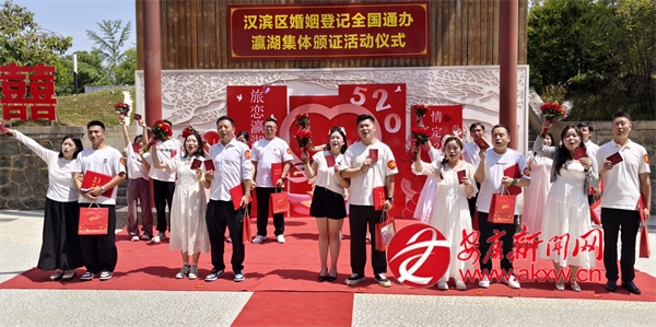 在做好窗口登記的同時(shí),漢濱區(qū)婚姻登記服務(wù)中心拓展服務(wù)形式,在瀛湖金螺島戶外頒證基地,開展“5·20新‘證’啟航,幸福‘通辦’未來”集體頒證活動(dòng),邀請(qǐng)10對(duì)新人開展集體戶外頒證,在眾人的見證下宣讀愛情誓言,接受大家的祝福。