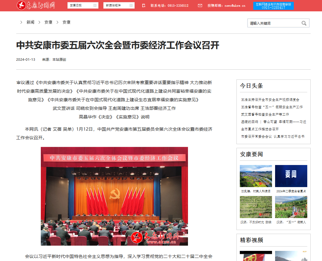 《中共安康市委五屆六次全會(huì)暨市委經(jīng)濟(jì)工作會(huì)議召開(kāi)》(2024-01-13發(fā)布)