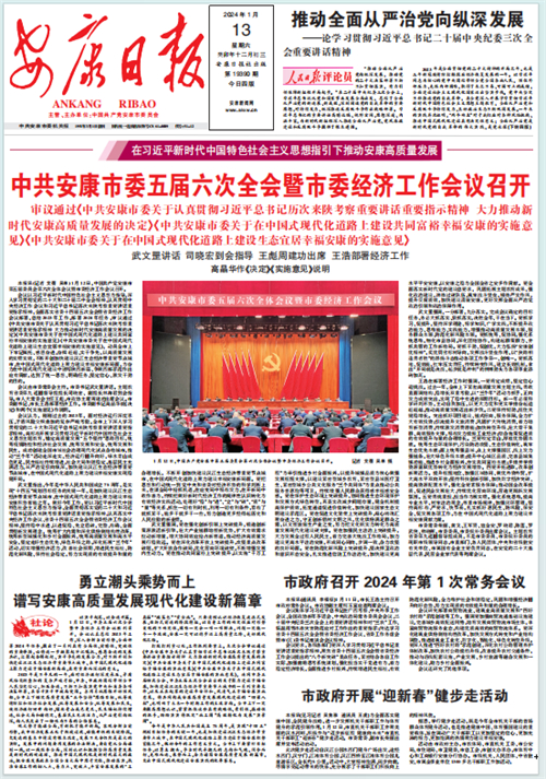 (2024年1月13日安康日報(bào)01版報(bào)道“中共安康市委五屆六次全會(huì)暨市委經(jīng)濟(jì)工作會(huì)議召開”)