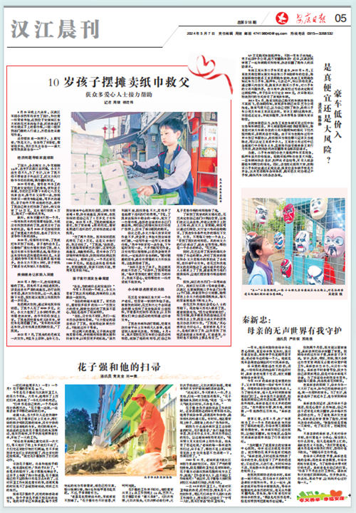 (2024年5月7日安康日報(bào)05版“10歲孩子擺攤賣紙巾救父 獲眾多愛心人士接力幫助”)
