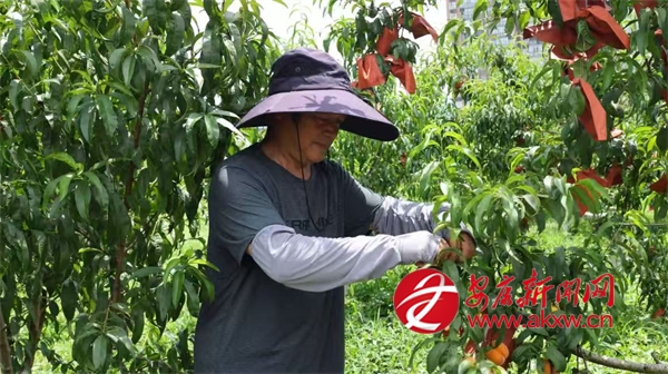 同樣迎來收獲的還有城關(guān)鎮(zhèn)的黃桃,在城關(guān)鎮(zhèn)龍嶺村的黃桃種植基地,連片的桃樹郁郁蔥蔥,金燦燦的黃桃壓彎了枝條,空氣中彌漫著誘人的桃香?;刎?fù)責(zé)人劉宏正忙著采摘,臉上洋溢著燦爛的笑容,他一邊采摘一邊介紹道:“我們這個(gè)桃園有金鳳黃桃、黃金黃桃、秋彤桃和冬桃四個(gè)品種,一共有9畝多,從6月中旬到10月左右,陸續(xù)都有成熟的桃子?!?/p>