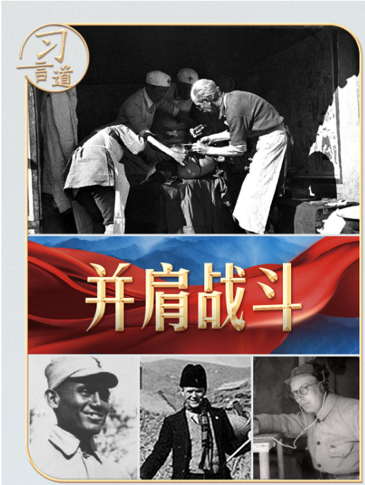 印度醫(yī)生柯棣華、法國醫(yī)生貝熙葉、德國人約翰·拉貝、丹麥人辛德貝格、英國人林邁可、國際主義戰(zhàn)士漢斯·希伯、蘇聯(lián)飛行大隊長庫里申科、美國“飛虎隊”......他們的事跡,習(xí)近平總書記曾多次動情講述。總書記還在國內(nèi)外重要場合為曾幫助和支持中國抗戰(zhàn)的國際友人頒獎,向他們致敬。