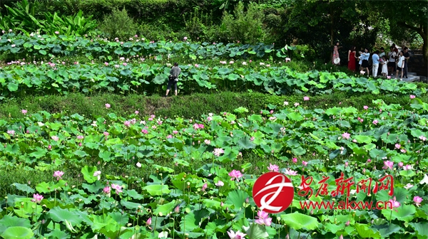 連日來,平利縣廣佛鎮(zhèn)余家灣百畝荷塘花開爭艷,引得游人或駐足細(xì)品荷韻,或輕倚棧道拍攝留影。王韜 攝?