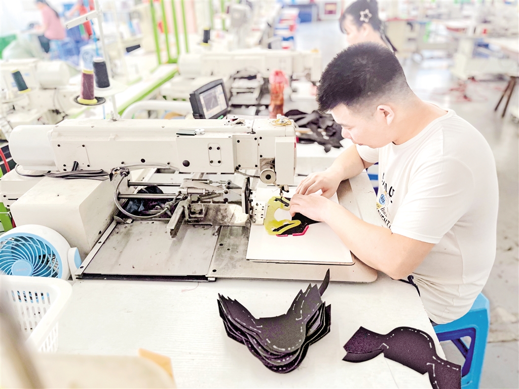 同樣忙碌的場(chǎng)景也出現(xiàn)在景鑫鼎昊鞋業(yè)公司的車間內(nèi)?!案谶@,總要回來做點(diǎn)什么?!惫矩?fù)責(zé)人劉守杰說,和許多小鎮(zhèn)青年一樣,他曾外出闖蕩,積累了豐富的行業(yè)經(jīng)驗(yàn)。一次與制鞋業(yè)的深度接觸,讓他看到了商機(jī),更看到了帶動(dòng)鄉(xiāng)親就業(yè)的可能。“自己富了不算啥,讓大伙都掙到錢,那才叫本事。”懷揣反哺家鄉(xiāng)的樸素心愿,2019年,他毅然返鄉(xiāng)創(chuàng)辦鞋廠。
