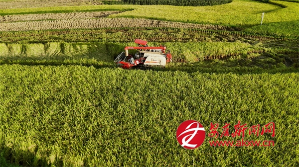 本網(wǎng)訊(通訊員 方亮 劉東)當前正值水稻收獲的季節(jié),9月8日天氣轉(zhuǎn)晴,漢陰縣平梁鎮(zhèn)新河村的稻田里迅速熱鬧起來。村民們搶抓這一關(guān)鍵窗口期,以“機械化收割+傳統(tǒng)勞作”相結(jié)合的方式全力搶收,在連片金黃的稻田中,勾勒出一幅生動的秋日“豐”景圖。