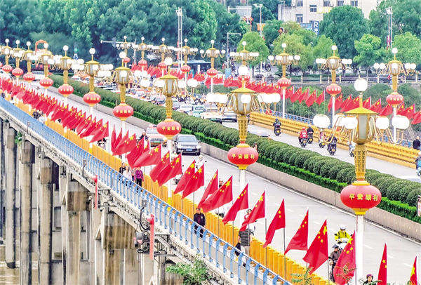 9月25日,我市市政部門對漢江一橋進行了裝扮,以迎接即將到來的國慶節(jié)。?陳德模 攝