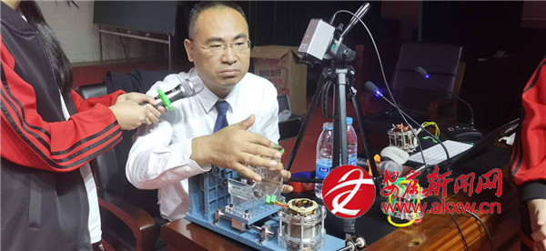 講座的亮點(diǎn)之一是關(guān)于“三相交流鼠籠式異步電動(dòng)機(jī)”的現(xiàn)場(chǎng)實(shí)驗(yàn)展示。嵇教授首先通俗易懂地闡釋了該類(lèi)型電動(dòng)機(jī)作為現(xiàn)代工業(yè)核心的重要地位及基本原理,隨后現(xiàn)場(chǎng)演示實(shí)驗(yàn)過(guò)程,逐步解析其內(nèi)部結(jié)構(gòu)、旋轉(zhuǎn)磁場(chǎng)的形成機(jī)制,以及“鼠籠”轉(zhuǎn)子實(shí)現(xiàn)電能與機(jī)械能高效轉(zhuǎn)換的原理。抽象難懂的電磁學(xué)知識(shí),在直觀的演示與生動(dòng)的講解中變得清晰可感。嵇教授還引導(dǎo)同學(xué)們思考該項(xiàng)技術(shù)在各行各業(yè)的廣泛應(yīng)用,切身感受科技對(duì)社會(huì)發(fā)展的深遠(yuǎn)影響。這一環(huán)節(jié)有效激發(fā)了同學(xué)們對(duì)工程技術(shù)的興趣與對(duì)科學(xué)原理的探索熱情。