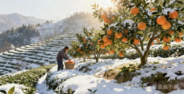 雪落茶山,天地一白。這場突如其來的冬雪,讓紫陽的群山披上了素白的衣裳,也讓山間的金錢桔迎來了最美的時光。