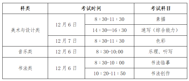 6.音樂類聽寫與樂理科目正式開考前15分鐘(8:15)后,遲到考生不得進入考場。美術與設計類各科、書法類臨摹科目開考15分鐘后,遲到考生不得進入考場。