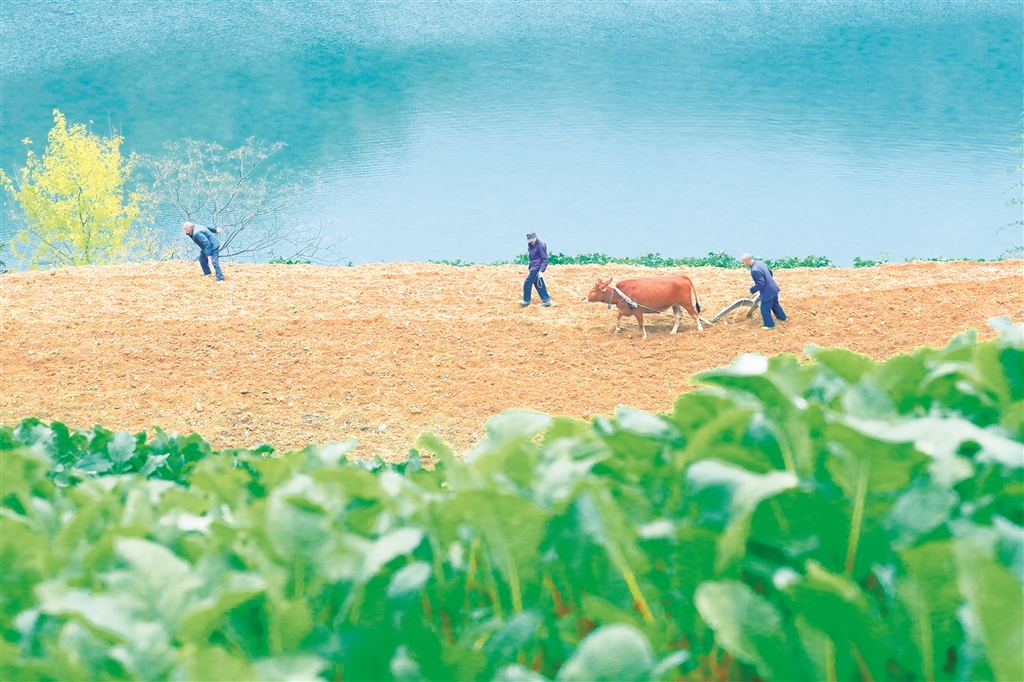 江岸邊,村民進行冬季土地管理。李成寶 攝