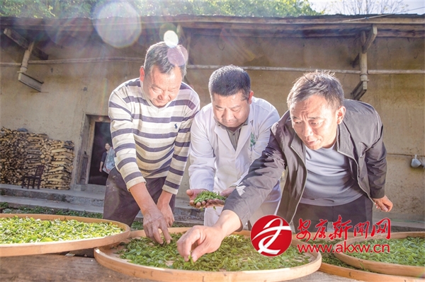 “十四五”期間,我市持續(xù)推進(jìn)茶產(chǎn)業(yè)發(fā)展,努力實(shí)現(xiàn)茶產(chǎn)業(yè)“四時(shí)有收”。圖為紫陽白茶非遺制作技藝代表性傳承人在高橋鎮(zhèn)裴壩村,向茶農(nóng)推廣紫陽白茶非遺制作技藝。 李勝璋 攝?