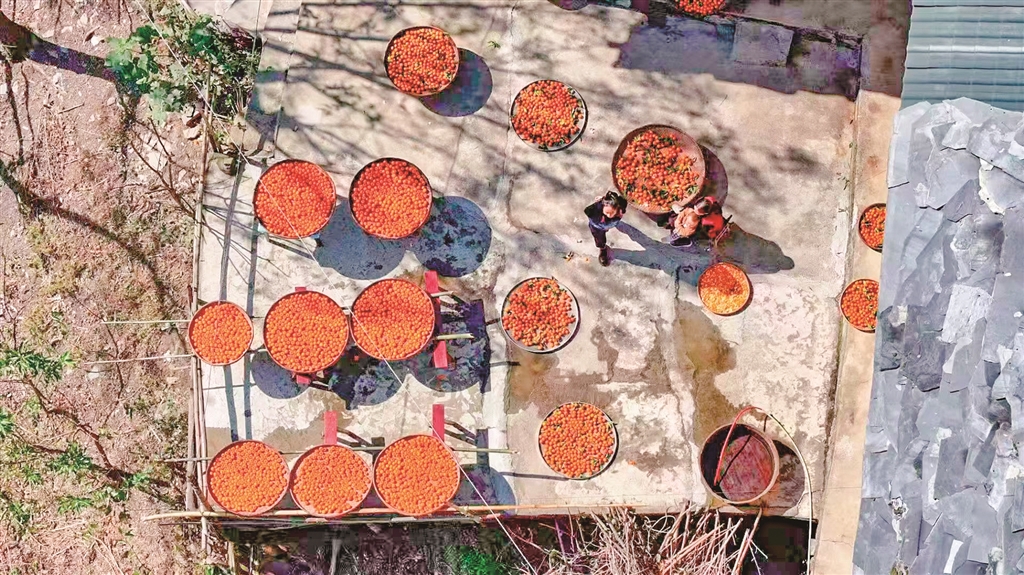△ 村民家中正在晾曬制茶所需的橘皮