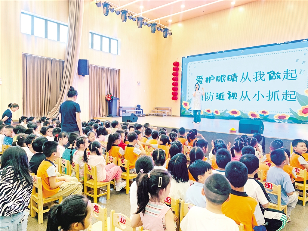 今年6月6日是全國(guó)第30個(gè)“愛眼日”。在愛眼日來(lái)臨之際,6月5日下午,市婦幼保健院兒童保健科醫(yī)生陳興芳走進(jìn)安康市高新區(qū)第六幼兒園,為大班幼兒及老師帶來(lái)近視防控知識(shí)講座。陳興芳以眼睛的謎語(yǔ)開場(chǎng),用通俗易懂的語(yǔ)言向孩子們介紹了眼睛的結(jié)構(gòu)和功能,并通過生動(dòng)的科普向小朋友們介紹了如何正確用眼、保護(hù)視力以及手衛(wèi)生的方法。通過此次活動(dòng),不僅讓孩子們了解了眼睛的重要性,更提高了孩子們愛護(hù)眼睛的意識(shí)。(鄒春艷 攝)