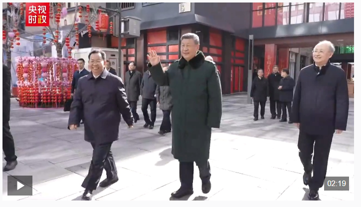 2月10日上午,在北京考察調(diào)研的習近平總書記來到隆福寺街區(qū),了解當?shù)刎S富節(jié)日市場供應、打造城市特色活力片區(qū)等情況,看望慰問基層干部群眾。這一天恰逢農(nóng)歷小年,隆福大廈前,新春市集吸引了大量市民和游客。習近平饒有興致察看各式年貨攤位,同現(xiàn)場群眾親切交流。