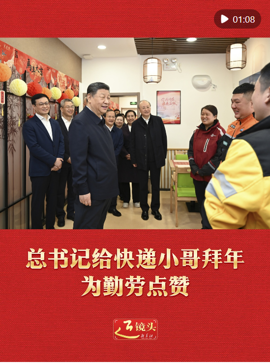 10日上午,習(xí)近平總書(shū)記在北京考察調(diào)研,走進(jìn)西城區(qū)新街口街道父母食堂,見(jiàn)到在這里休息的快遞小哥,關(guān)切詢問(wèn)他們的工作和生活,為他們付出的辛勞和作出的貢獻(xiàn)點(diǎn)贊,并給他們拜年。
