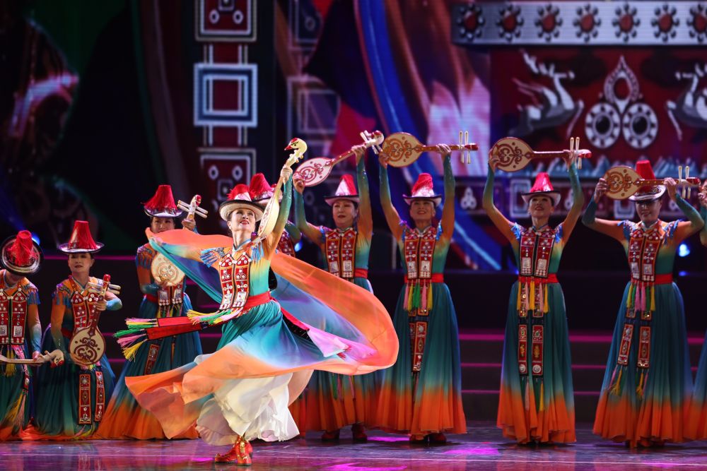 2026年1月7日,甘肅省張掖市裕固美舞蹈團的演員在甘肅省群眾文藝展演展播活動首場演出中表演民族舞蹈。