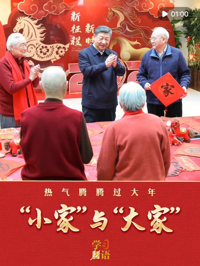 春節(jié),以家為圓心,億萬人的奔赴與守望,構(gòu)成了這個(gè)節(jié)日最重要的意義。每個(gè)“小家”熱氣騰騰,中國這個(gè)“大家”就蒸蒸日上。聆聽習(xí)近平總書記的新春祝福,開開心心、歡歡樂樂過好年!