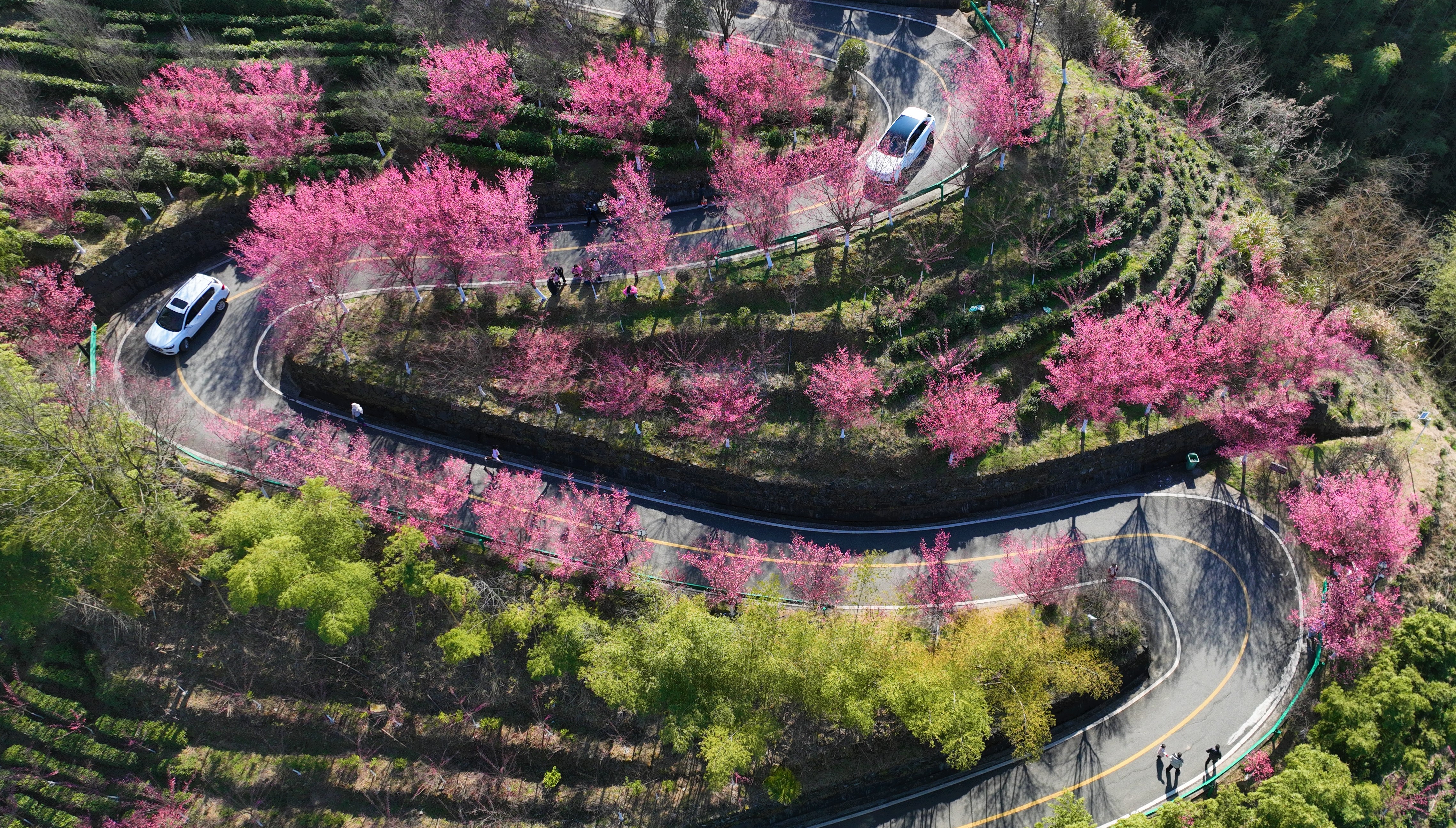 春節(jié)期間,平利縣長安鎮(zhèn)洪福茶山的梅花競相盛開,吸引眾多市民游客前來賞梅游玩。