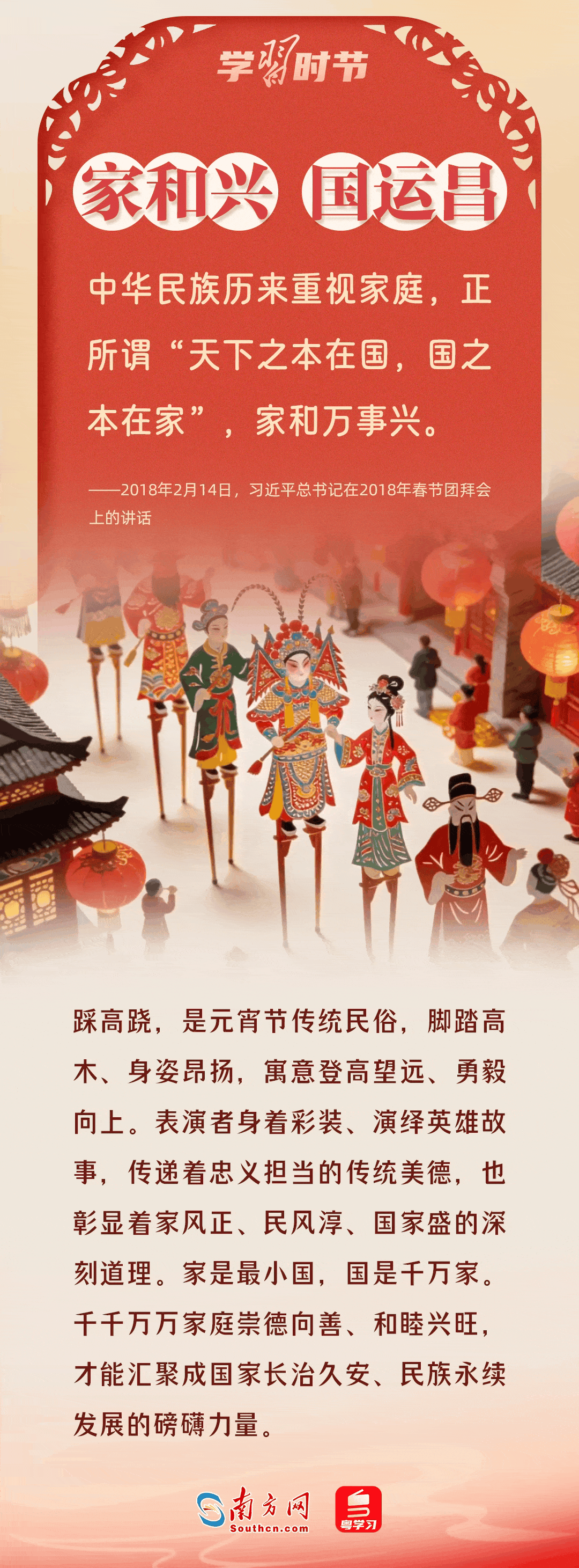 “每個‘小家’熱氣騰騰,中國這個‘大家’就蒸蒸日上?!奔彝サ睦渑瘹g,始終與國家民族的前途命運緊緊相連。總書記多次深情寄語,深刻道出家與國休戚與共、血脈相依的深厚聯(lián)結(jié)。