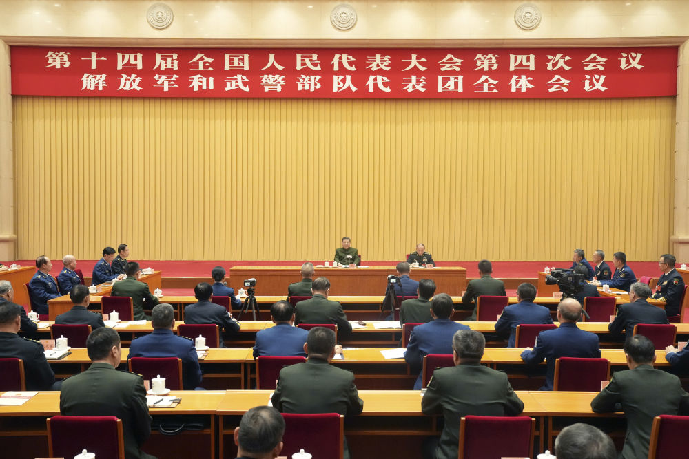 3月7日下午,中共中央總書記、國家主席、中央軍委主席習(xí)近平出席十四屆全國人大四次會議解放軍和武警部隊代表團全體會議并發(fā)表重要講話。新華社記者 李剛 攝