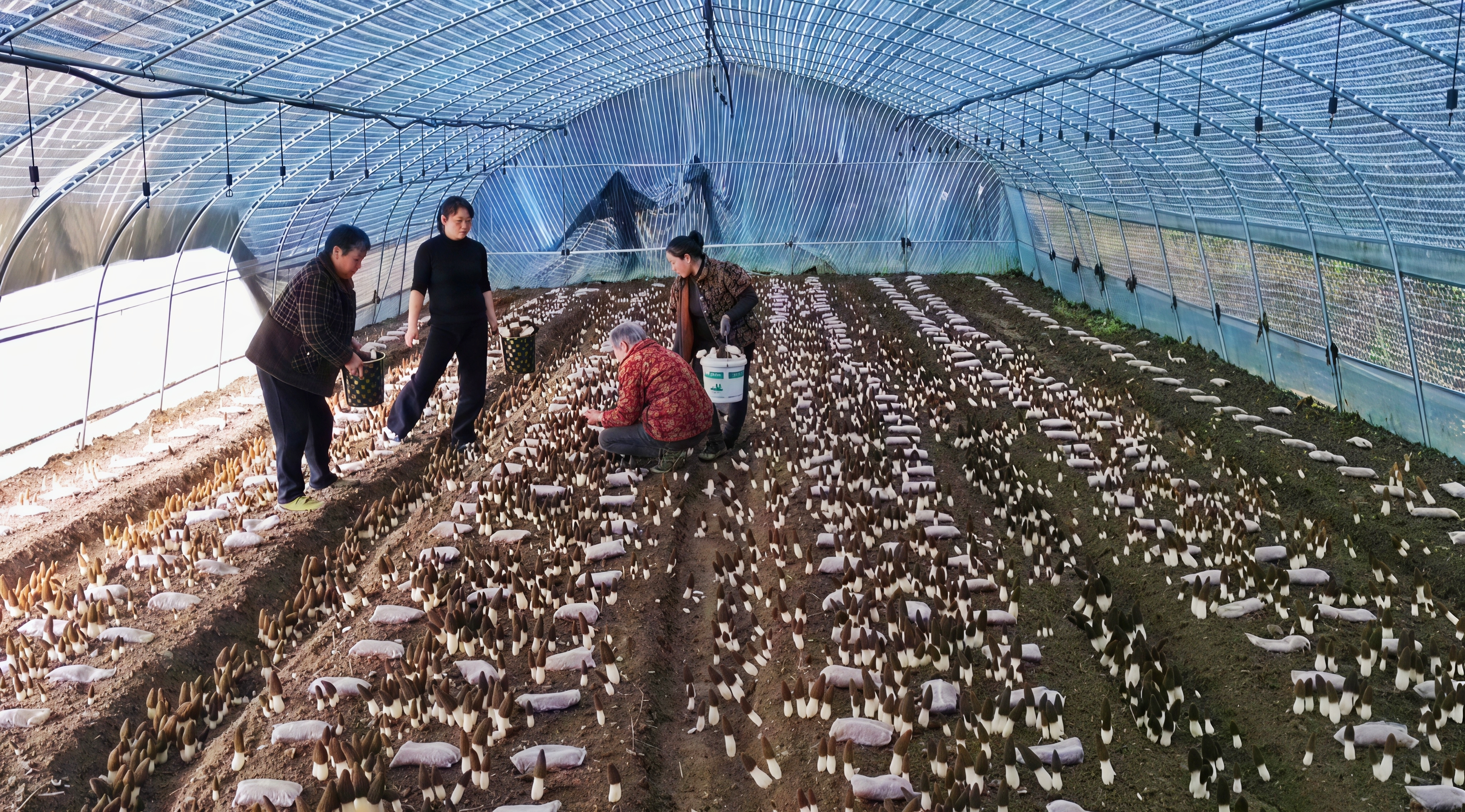 在大雁村羊肚菌種植基地,50畝羊肚菌進入集中采收期。整齊排列的大棚內,一朵朵形態(tài)飽滿的羊肚菌破土而出,褐色菌蓋紋理清晰,長勢喜人。村民們手持小刀,小心翼翼采收著被譽為“菌中之王”的珍貴食材。羊肚菌采用“冬播春收”模式,生產周期短、經濟效益顯著。按當前長勢,預計畝產鮮菇可達400公斤,畝產值超3萬元,真正實現“春收”變“增收”。
