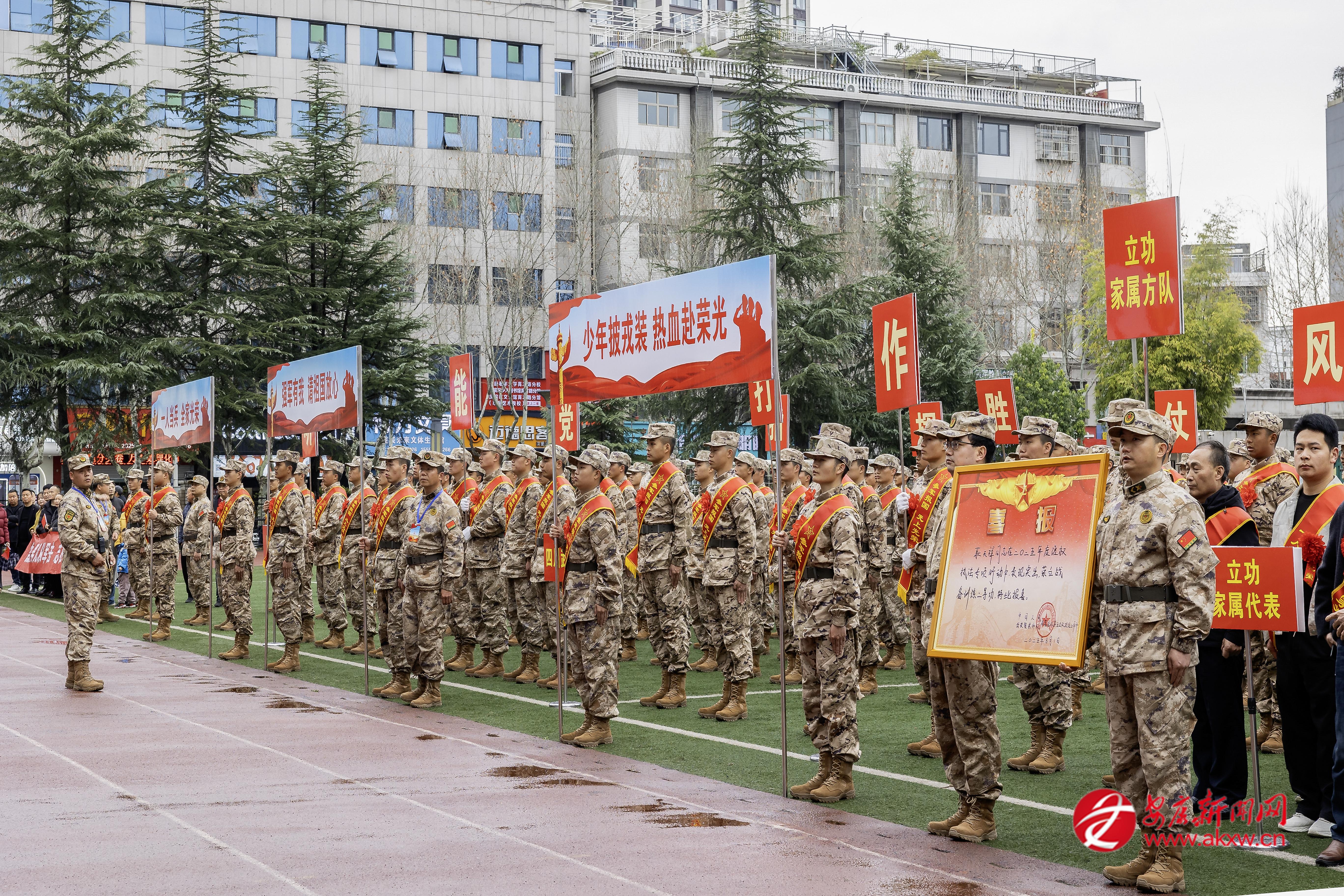 3月15日,漢濱區(qū)舉行集中慶送立功喜報(bào)暨2026年上半年歡送新兵儀式。胸戴紅花、身披綬帶的新兵們精神抖擻、英姿勃發(fā)。李成菊 攝