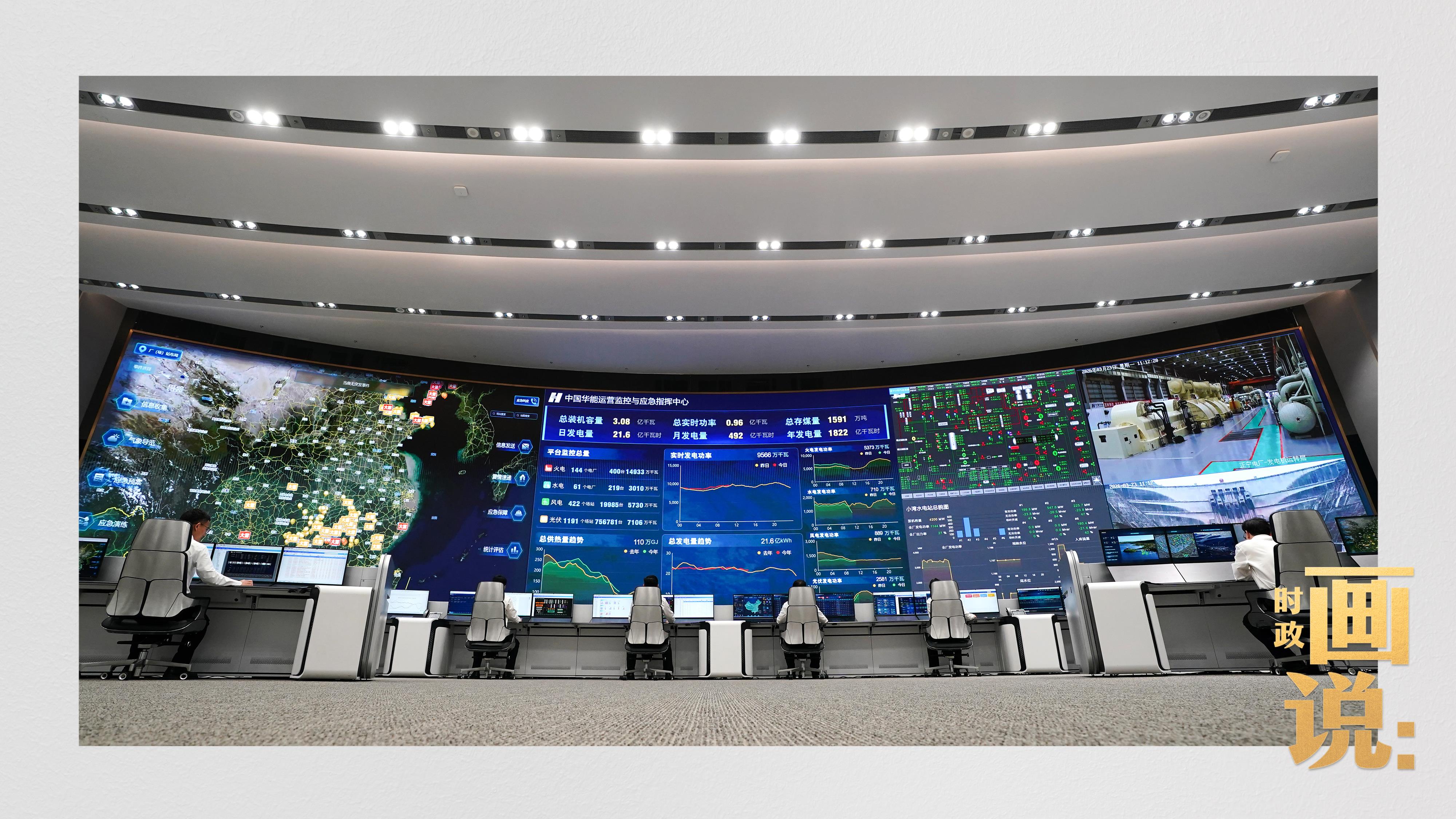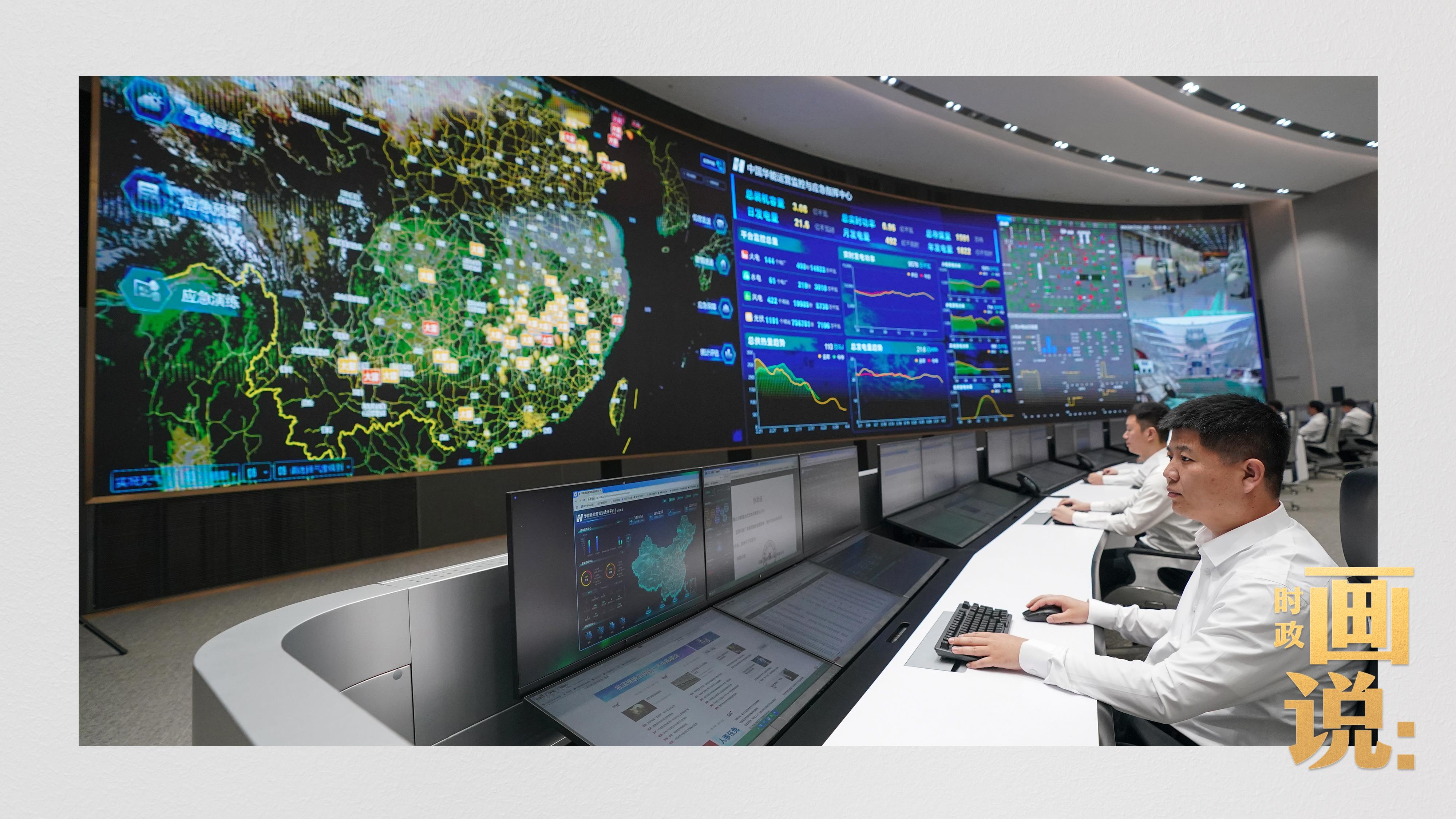 △中國華能運營監(jiān)控與應(yīng)急指揮中心,工作人員正在忙碌
