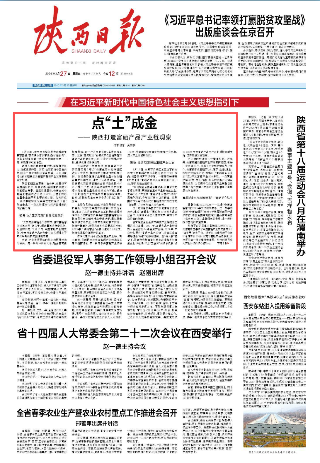 《陜西日報》丨點“土”成金——陜西打造富硒產品產業(yè)鏈觀察