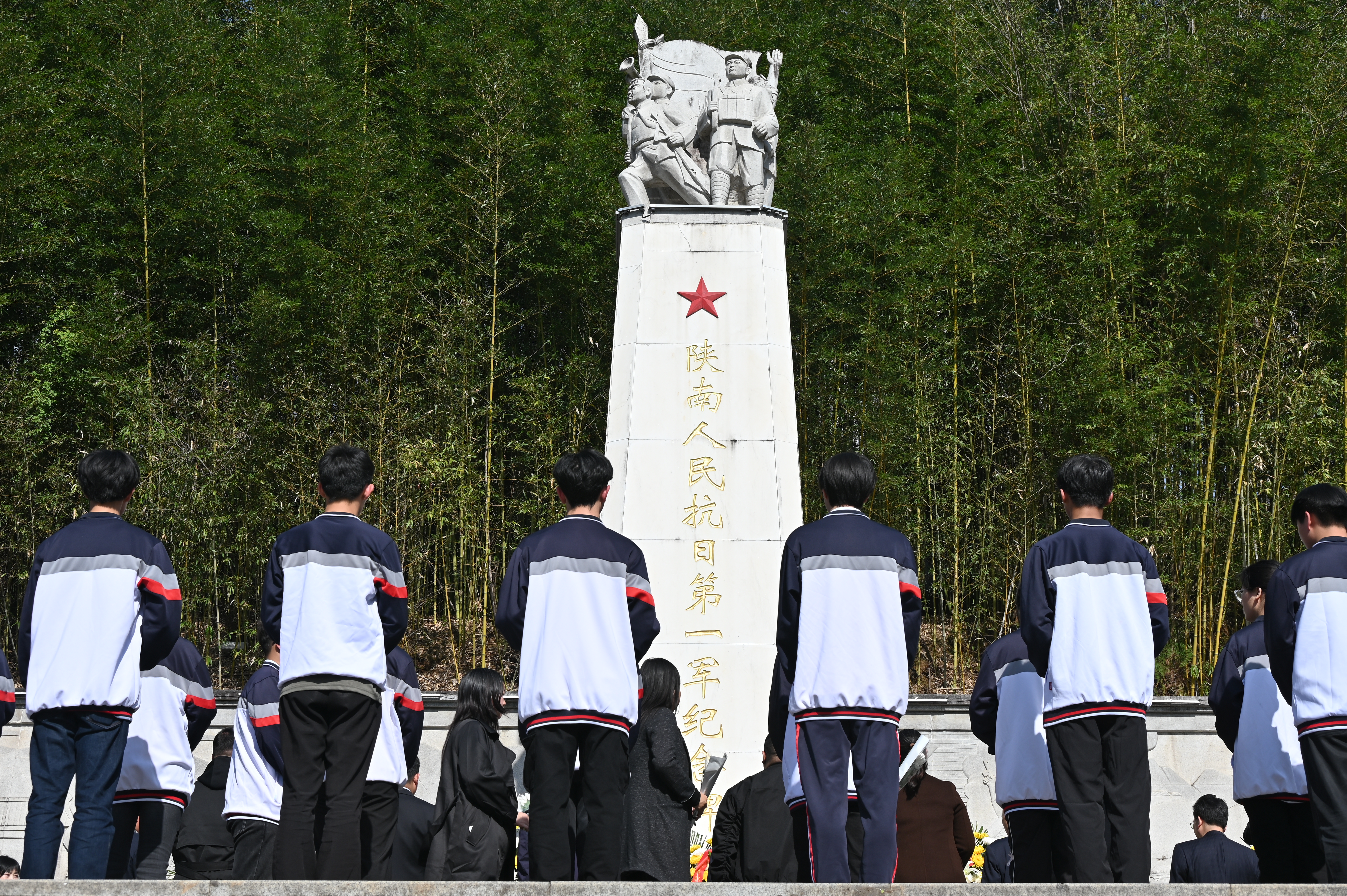 3月31日,安康職業(yè)技術學院組織師生赴漢陰縣開展“漢陰尋跡、致敬英烈”活動,參觀了漢陰縣沈啟賢將軍故居、楊棄將軍紀念館。圖為陜南人民抗日第一軍紀念廣場,師生代表敬獻花籃。 張智明 攝