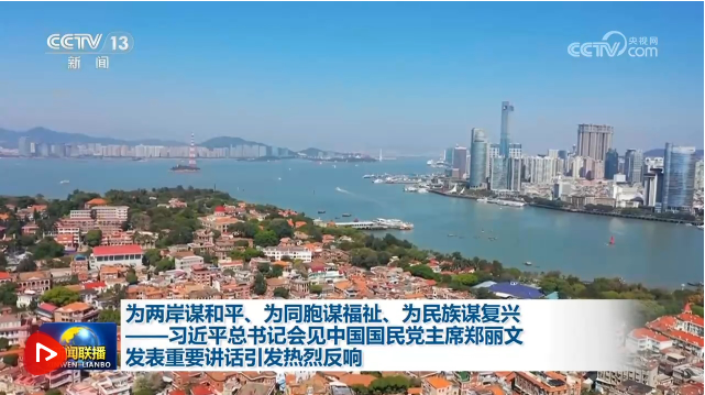 央視網(wǎng)消息(新聞聯(lián)播):4月10日,中共中央總書記習(xí)近平在北京會見鄭麗文主席率領(lǐng)的中國國民黨訪問團(tuán)并發(fā)表重要講話。習(xí)近平總書記著眼中華民族整體利益和長遠(yuǎn)發(fā)展,提出“堅持以正確認(rèn)同促進(jìn)心靈契合、堅持以和平發(fā)展守護(hù)共同家園、堅持以交流融合增進(jìn)民生福祉、堅持以團(tuán)結(jié)奮斗實現(xiàn)中華民族偉大復(fù)興”的重要論述,為推動兩岸關(guān)系發(fā)展進(jìn)一步指明了前進(jìn)方向、提供了重要指引。總書記的重要講話在海內(nèi)外引發(fā)熱烈反響。