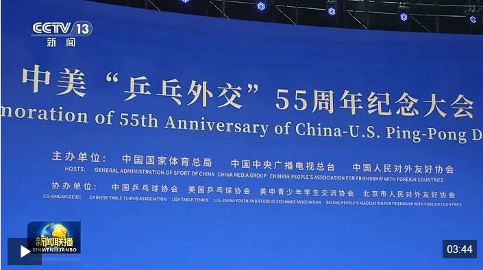 4月10日,習近平主席向中美“乒乓外交”55周年紀念大會暨中美青少年體育交流系列活動啟動儀式致賀信,高度評價“乒乓外交”的歷史和現(xiàn)實意義,鼓勵兩國各界人士特別是青年一代相知相親、攜手前行,為兩國關(guān)系注入強大動力和溫暖能量。習近平主席的賀信在中美各界人士中引發(fā)熱烈反響。