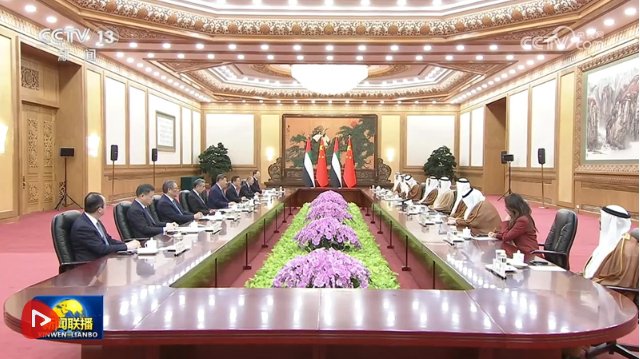 習(xí)近平指出,阿聯(lián)酋是中國的全面戰(zhàn)略伙伴,中方始終高度重視發(fā)展同阿聯(lián)酋的關(guān)系。在雙方共同努力下,中阿關(guān)系保持健康穩(wěn)定發(fā)展,政治互信不斷加深,務(wù)實(shí)合作穩(wěn)步推進(jìn),人文交流豐富多彩。鞏固和提升中阿關(guān)系是雙方的堅定共識,符合兩國人民期待。中方愿同阿方攜手同行,打造更加穩(wěn)固堅韌、富有活力的中阿全面戰(zhàn)略伙伴關(guān)系。雙方要繼續(xù)在涉及彼此核心利益和重大關(guān)切問題上相互支持,保持高層交往,筑牢戰(zhàn)略互信。加強(qiáng)發(fā)展戰(zhàn)略對接,在能源、投資、貿(mào)易、科技等領(lǐng)域深挖潛力,深化互利合作。推動教育、民航、旅游等合作取得更大進(jìn)展,密切人文交流,夯實(shí)民意基礎(chǔ)。在聯(lián)合國、金磚國家等多邊平臺增進(jìn)協(xié)調(diào)合作,以中阿關(guān)系的穩(wěn)定性應(yīng)對國際和地區(qū)形勢的不確定性,共同推動構(gòu)建人類命運(yùn)共同體。