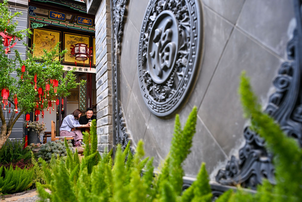 2026年3月24日,游客在會澤縣白霧村的“讀白書院”休閑?!白x白書院”由清代楚黔會館活化利用改造而成,是當?shù)鼗罨霉沤ㄖ⑼苿余l(xiāng)村文化與旅游融合的代表性空間。云南省曲靖市會澤縣娜姑鎮(zhèn)白霧村歷史悠久,曾是明清時期“南銅北運”的首站,村內古跡眾多,風景如畫。