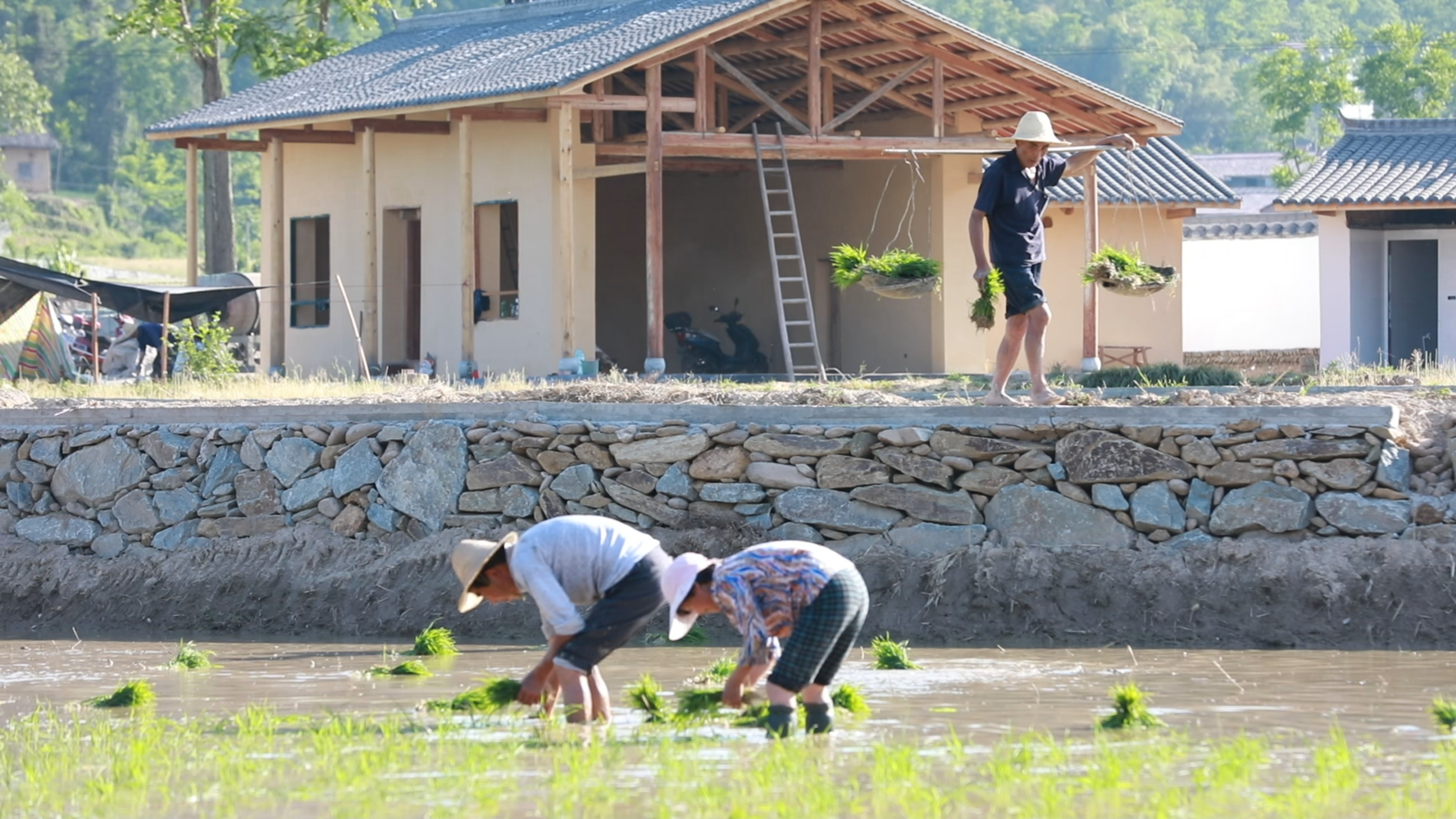 恒口示范區(qū)農(nóng)戶正在種植水稻。 范旭 攝