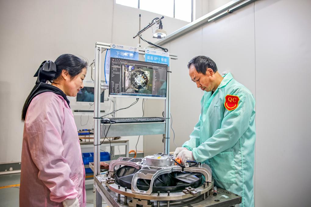 2026年4月2日,三江電器的工人正對(duì)電機(jī)產(chǎn)品進(jìn)行下線檢查。(受訪者供圖)