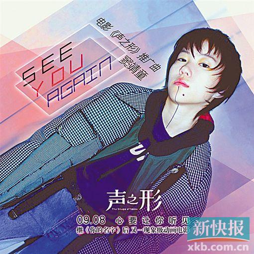 《聲之形》是繼《你的名字!泛笥忠徊楷F(xiàn)象級動畫電影,講述了患有聽覺障礙的少女西宮硝子,和曾經(jīng)傷害過她的少年石田將也之間的故事。西宮硝子在學(xué)校備受欺負(fù),但她仍然對周圍的一切抱以善意,當(dāng)時石田將也正是主要施暴者之一。五年后更加成熟的兩人再次相遇,逐漸體會到了彼此的心情和處境,終于學(xué)會了接納別人并與自己和解。推廣曲《See you again》是竇靖童首次與動畫電影合作,詞曲由她本人全部包攬并親自演唱。